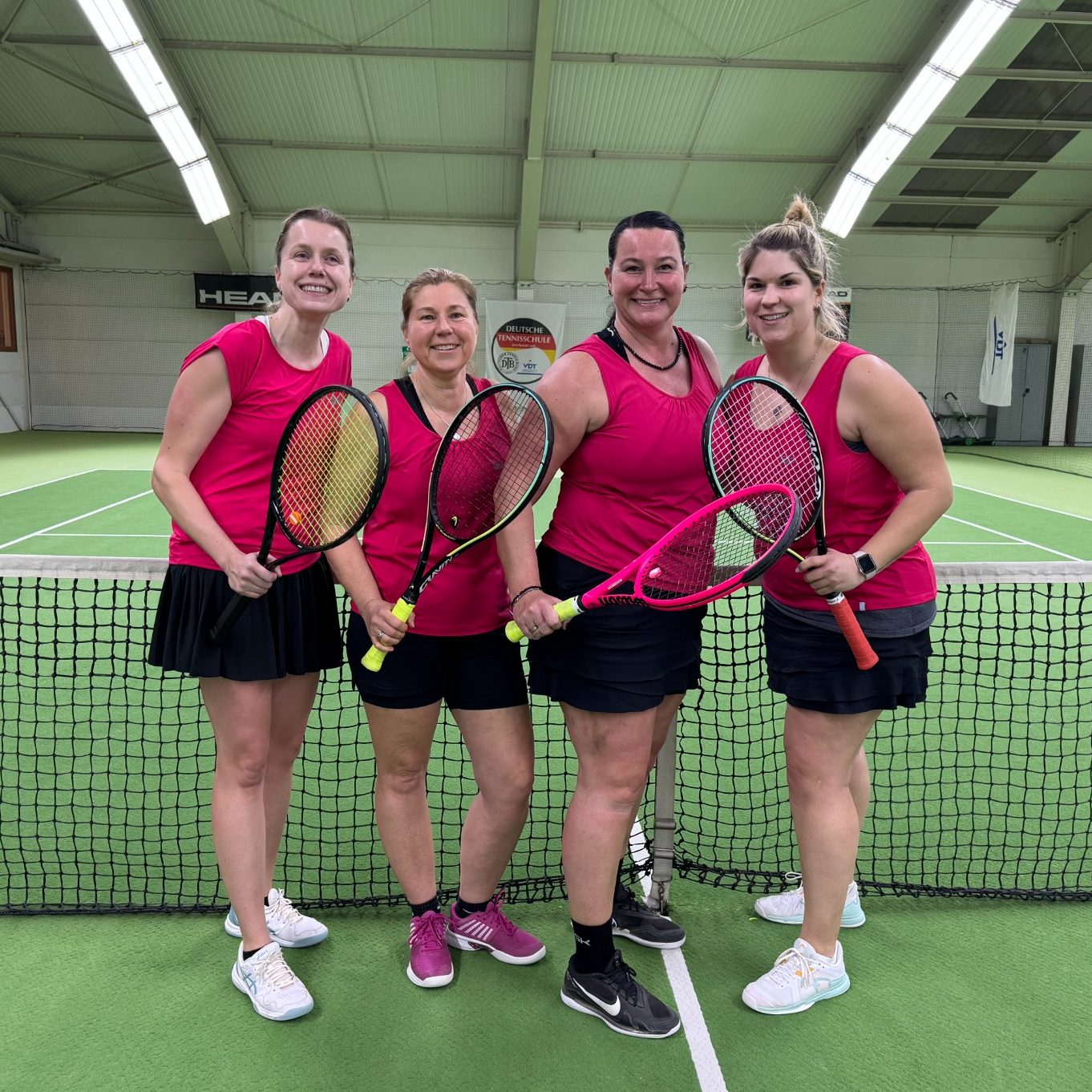 Sowohl das 1. Doppel (Jenna/Steffi) als auch das 2. Doppel (Judith/Aline) haben in zwei Sätzen gewonnen. So beendeten unsere Damen 30 ihr erstes Winterrundenspiel 4:2.